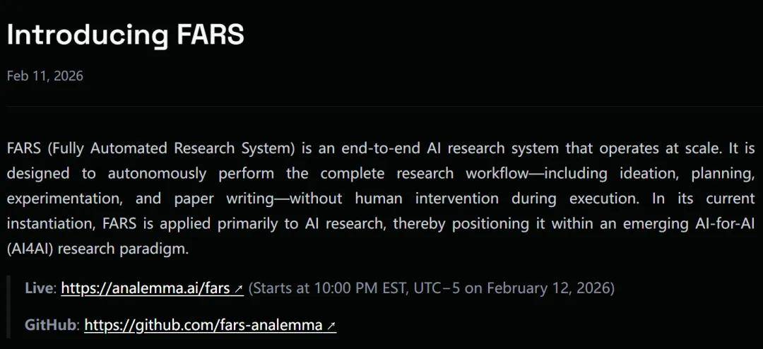 Analemma 在推文中声称,他们将面向全球公开直播部署端到端 AI 研究系统 FARS。